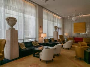 Kimpton Hotel Palomar is where “comfort meets class,” with accommodations in an earthy color palette for a calming refuge. King deluxe, queen queen deluxe, and city view deluxe rooms offer floor-to-ceiling windows to let in Chicago views. Families can connect rooms, or there’s the option to upgrade to the luxurious Artist Suite. Luxurious spa bathtubs are accompanied by full-sized business-friendly desks and artful homages to the city.