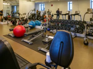 After your workout, take a dip in the heated indoor pool and finish the day off in the the sleek locker room, complete with an unwinding area with televisions. There’s also a children’s accessible pool, so your little ones can take a dip as well. In warmer months, the fitness center’s personal trainers offer outdoor programs. Head to the lakefront beach or park for tai chi, yoga and resist-a-ball sessions.