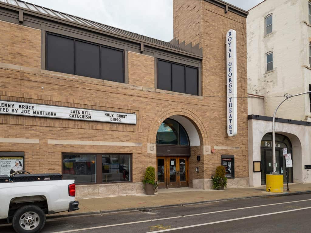 The largest venue in the Royal George Complex is the Mainstage Theatre, which has 452 seats (267 in the orchestra and 185 in the balcony). The traditional proscenium theater has fixed seating on two levels and an orchestra pit. It is known for its excellent sight lines and live acoustics. There truly isn’t a bad seat in the house. It hosts frequent straight plays, musicals, one-person shows, stand-up comedy and film screenings.